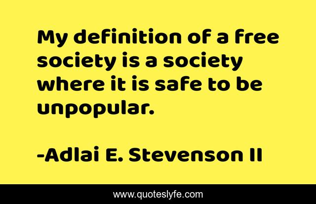 This page presents the quote "My definition of a free society is a society where it is safe to be unpopular.". Author of this quote is Adlai E. Stevenson II. This quote is about freedom, popularity,.
