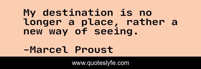 This page presents the quote "My destination is no longer a place, rather a new way of seeing.". Author of this quote is Marcel Proust. This quote is about living, life, growth, outlook,.