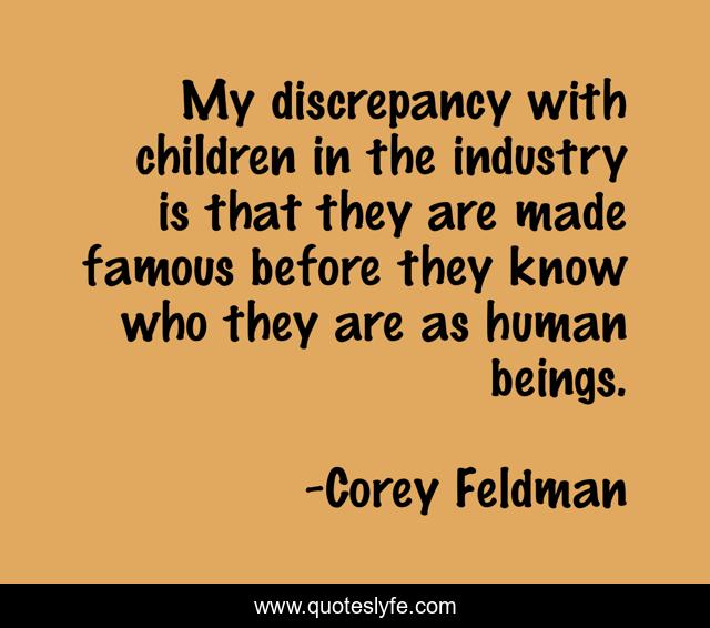 This page presents the quote "My discrepancy with children in the industry is that they are made famous before they know who they are as human beings.". Author of this quote is Corey Feldman. This quote is about children, human,.