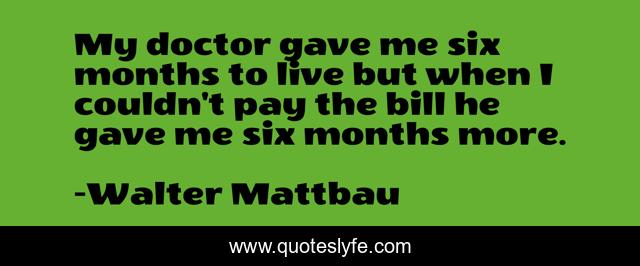This page presents the quote "My doctor gave me six months to live but when I couldn't pay the bill he gave me six months more.". Author of this quote is Walter Mattbau. This quote is about funny, comedy,.