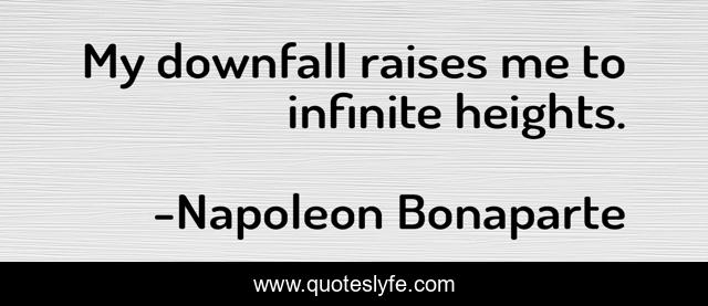 This page presents the quote "My downfall raises me to infinite heights.". Author of this quote is Napoleon Bonaparte. .