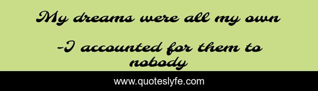 "I accounted for them to nobody Quotes." Quoteslyfe.com, 2025. Fri. 05 Dec. 2025. <https://www.quoteslyfe.com/quote/My-dreams-were-all-my-own-53425>.