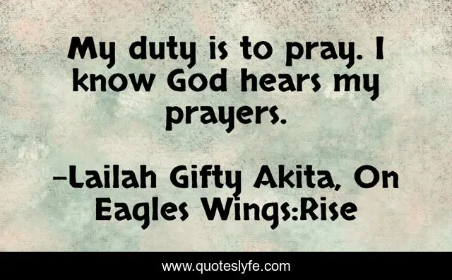 "Lailah Gifty Akita, On Eagles Wings:Rise Quotes." Quoteslyfe.com, 2025. Tue. 09 Dec. 2025. <https://www.quoteslyfe.com/quote/My-duty-is-to-pray-I-know-121292>.