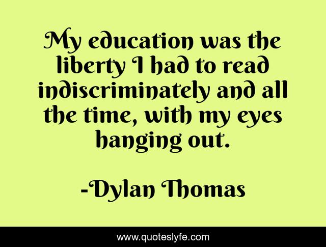 This page presents the quote "My education was the liberty I had to read indiscriminately and all the time, with my eyes hanging out.". Author of this quote is Dylan Thomas. This quote is about reading, education, curiosity, liberty, time,.