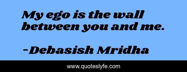 This page presents the quote "My ego is the wall between you and me.". Author of this quote is Debasish Mridha. This quote is about philosophy, debasish-mridha, quotes, ego, inspirational, enthusiasm, my-ego, debasish-mridha-m-d, wall-between-you-and-me,.