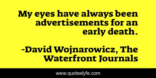 This page presents the quote "My eyes have always been advertisements for an early death.". Author of this quote is David Wojnarowicz, The Waterfront Journals. .