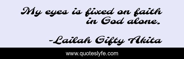 This page presents the quote "My eyes is fixed on faith in God alone.". Author of this quote is Lailah Gifty Akita. This quote is about faith, lailah-gifty-akita-affirmations, eye, fix, focus, christian,.