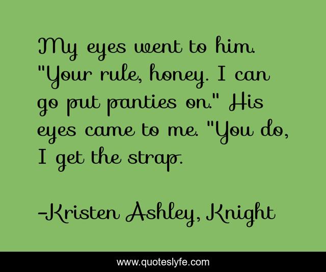 This page presents the quote "My eyes went to him. "Your rule, honey. I can go put panties on." His eyes came to me. "You do, I get the strap.". Author of this quote is Kristen Ashley, Knight. This quote is about cute, hot, adorable, knight,.