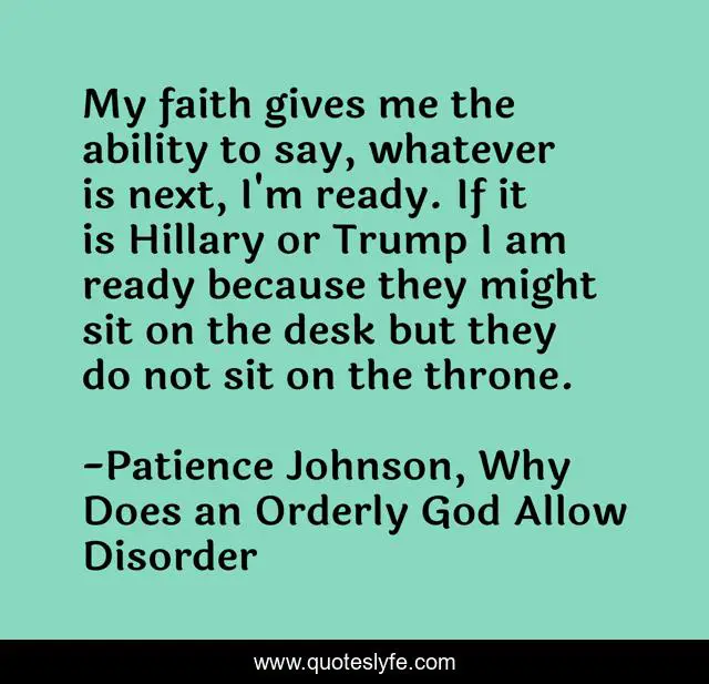 "Patience Johnson, Why Does an Orderly God Allow Disorder Quotes." Quoteslyfe.com, 2025. Sat. 06 Dec. 2025. <https://www.quoteslyfe.com/quote/My-faith-gives-me-the-ability-to-34023>.