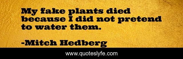 This page presents the quote "My fake plants died because I did not pretend to water them.". Author of this quote is Mitch Hedberg. This quote is about water, plants, fake,.