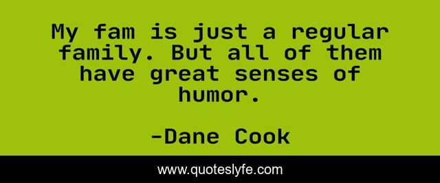 This page presents the quote "My fam is just a regular family. But all of them have great senses of humor.". Author of this quote is Dane Cook. This quote is about great, senses, family,.