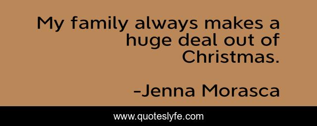 This page presents the quote "My family always makes a huge deal out of Christmas.". Author of this quote is Jenna Morasca. This quote is about always, family, deal,.