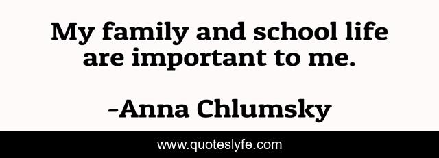 This page presents the quote "My family and school life are important to me.". Author of this quote is Anna Chlumsky. This quote is about me, life, school,.
