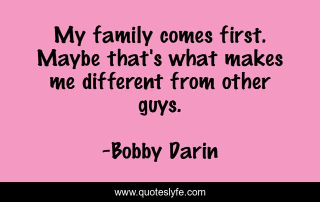This page presents the quote "My family comes first. Maybe that's what makes me different from other guys.". Author of this quote is Bobby Darin. This quote is about me, different, first,.
