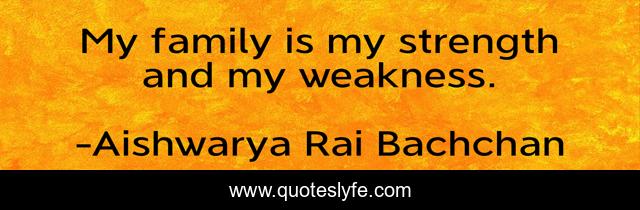 This page presents the quote "My family is my strength and my weakness.". Author of this quote is Aishwarya Rai Bachchan. This quote is about weakness, family,.