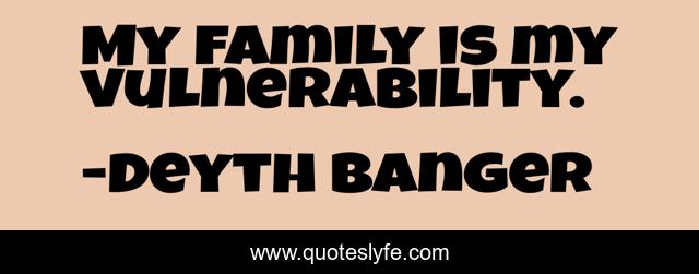 This page presents the quote "My family is my vulnerability.". Author of this quote is Deyth Banger. This quote is about my, vunerabality, vunerabal, family,.