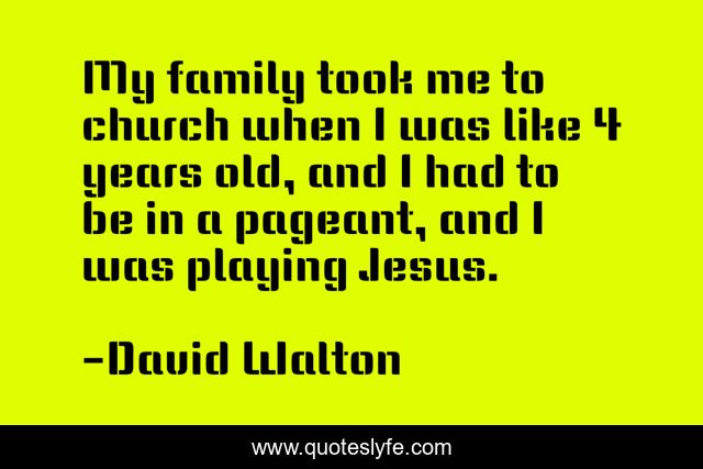 This page presents the quote "My family took me to church when I was like 4 years old, and I had to be in a pageant, and I was playing Jesus.". Author of this quote is David Walton. This quote is about me, church, years,.