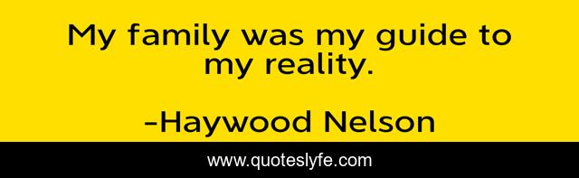 This page presents the quote "My family was my guide to my reality.". Author of this quote is Haywood Nelson. This quote is about guide, reality,.