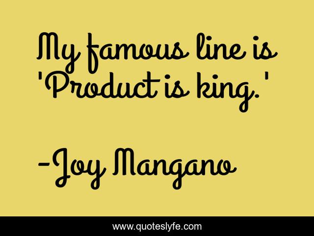 "Joy Mangano Quotes." Quoteslyfe.com, 2025. Fri. 05 Dec. 2025. <https://www.quoteslyfe.com/quote/My-famous-line-is-Product-is-king-291943>.