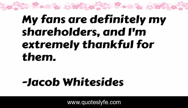 "Jacob Whitesides Quotes." Quoteslyfe.com, 2025. Fri. 05 Dec. 2025. <https://www.quoteslyfe.com/quote/My-fans-are-definitely-my-shareholders-and-306116>.