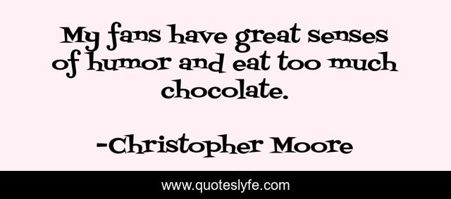 This page presents the quote "My fans have great senses of humor and eat too much chocolate.". Author of this quote is Christopher Moore. This quote is about great, fans, chocolate,.