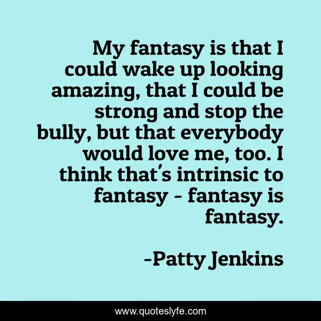 This page presents the quote "My fantasy is that I could wake up looking amazing, that I could be strong and stop the bully, but that everybody would love me, too. I think that's intrinsic to fantasy - fantasy is fantasy.". Author of this quote is Patty Jenkins. This quote is about me, strong, love, affection,.