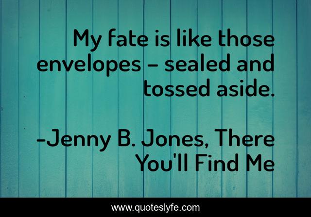 "Jenny B. Jones, There You'll Find Me Quotes." Quoteslyfe.com, 2025. Mon. 08 Dec. 2025. <https://www.quoteslyfe.com/quote/My-fate-is-like-those-envelopes-sealed-153562>.