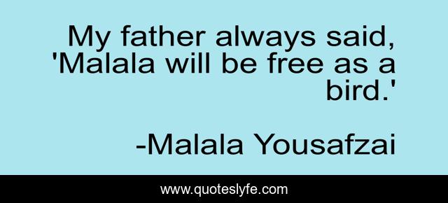This page presents the quote "My father always said, 'Malala will be free as a bird.'". Author of this quote is Malala Yousafzai. This quote is about father, bird, free,.