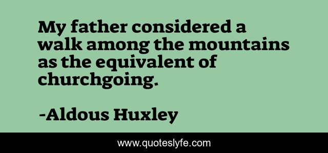 This page presents the quote "My father considered a walk among the mountains as the equivalent of churchgoing.". Author of this quote is Aldous Huxley. .