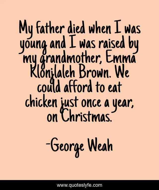 "George Weah Quotes." Quoteslyfe.com, 2025. Mon. 08 Dec. 2025. <https://www.quoteslyfe.com/quote/My-father-died-when-I-was-young-290623>.