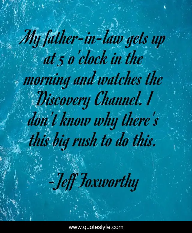 This page presents the quote "My father-in-law gets up at 5 o'clock in the morning and watches the Discovery Channel. I don't know why there's this big rush to do this.". Author of this quote is Jeff Foxworthy. This quote is about watches, discovery,.