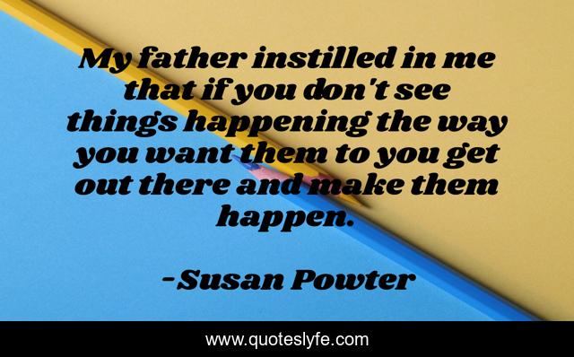 This page presents the quote "My father instilled in me that if you don't see things happening the way you want them to you get out there and make them happen.". Author of this quote is Susan Powter. This quote is about positive, confidence,.