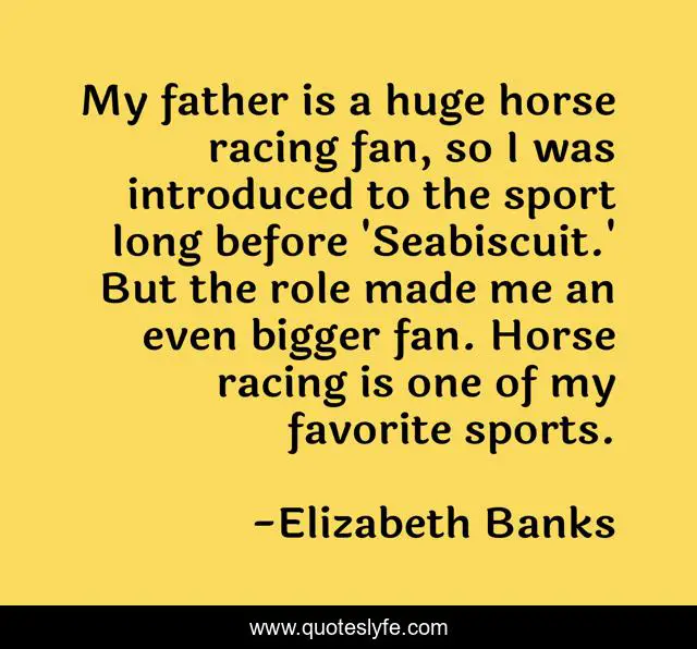 This page presents the quote "My father is a huge horse racing fan, so I was introduced to the sport long before 'Seabiscuit.' But the role made me an even bigger fan. Horse racing is one of my favorite sports.". Author of this quote is Elizabeth Banks. This quote is about me, horse, father,.