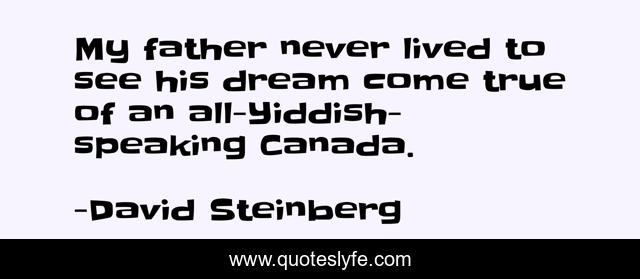 This page presents the quote "My father never lived to see his dream come true of an all-Yiddish-speaking Canada.". Author of this quote is David Steinberg. This quote is about travel, cities,.