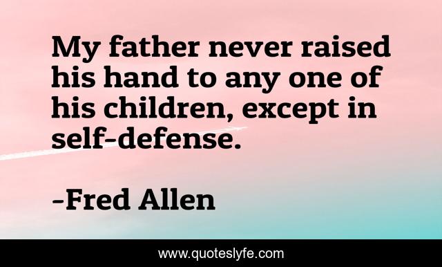 This page presents the quote "My father never raised his hand to any one of his children, except in self-defense.". Author of this quote is Fred Allen. This quote is about father, children,.