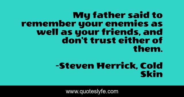 This page presents the quote "My father said to remember your enemies as well as your friends, and don't trust either of them.". Author of this quote is Steven Herrick, Cold Skin. This quote is about don-t-trust-them, trust, friends, remember, enemies,.