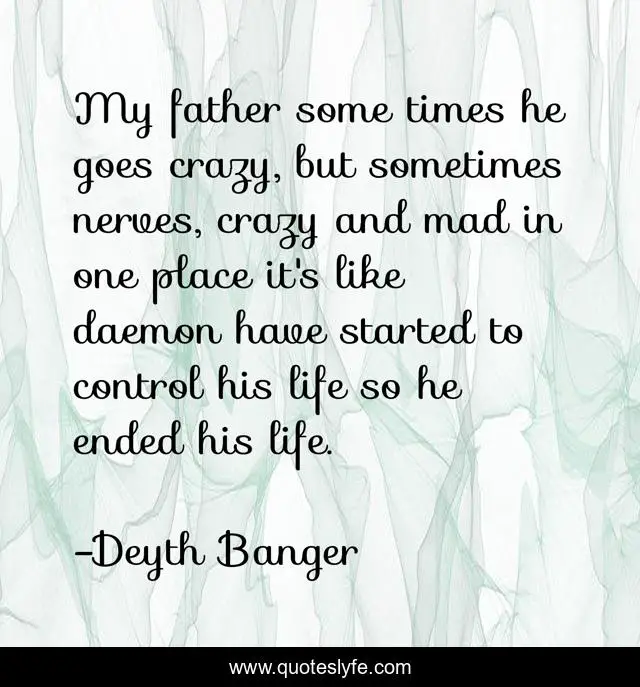 "Deyth Banger Quotes." Quoteslyfe.com, 2025. Fri. 05 Dec. 2025. <https://www.quoteslyfe.com/quote/My-father-some-times-he-goes-crazy-234938>.