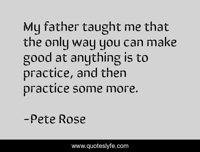 This page presents the quote "My father taught me that the only way you can make good at anything is to practice, and then practice some more.". Author of this quote is Pete Rose. This quote is about me, good, father,.