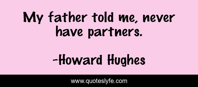 This page presents the quote "My father told me, never have partners.". Author of this quote is Howard Hughes. This quote is about me, father,.