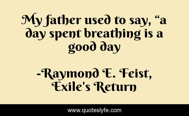 This page presents the quote "My father used to say, “a day spent breathing is a good day". Author of this quote is Raymond E. Feist, Exile's Return. This quote is about perspective, positive-outlook,.