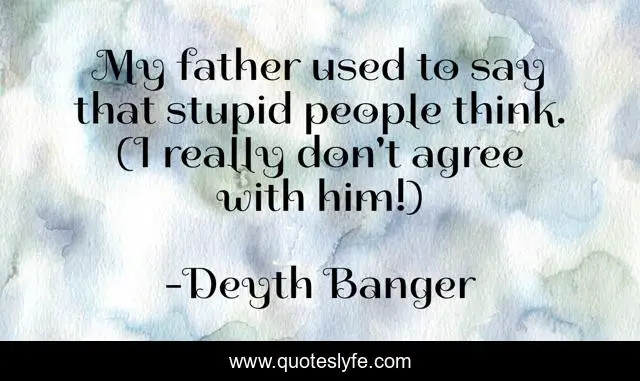 This page presents the quote "My father used to say that stupid people think. (I really don't agree with him!)". Author of this quote is Deyth Banger. This quote is about death, father, dead, agree, with, him,.
