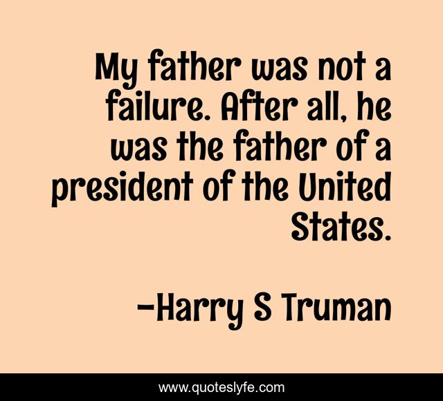 This page presents the quote "My father was not a failure. After all, he was the father of a president of the United States.". Author of this quote is Harry S Truman. This quote is about president, united, father,.