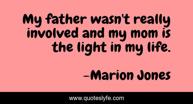 This page presents the quote "My father wasn't really involved and my mom is the light in my life.". Author of this quote is Marion Jones. This quote is about light, life, father,.