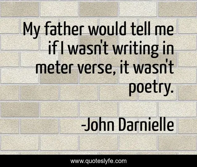 This page presents the quote "My father would tell me if I wasn't writing in meter verse, it wasn't poetry.". Author of this quote is John Darnielle. This quote is about me, father, writing,.