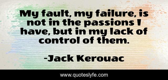This page presents the quote "My fault, my failure, is not in the passions I have, but in my lack of control of them.". Author of this quote is Jack Kerouac. This quote is about failure, passion,.
