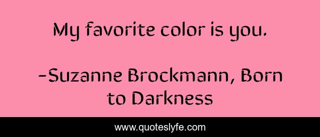 "Suzanne Brockmann, Born to Darkness Quotes." Quoteslyfe.com, 2026. Tue. 13 Jan. 2026. <https://www.quoteslyfe.com/quote/My-favorite-color-is-you-18458>.