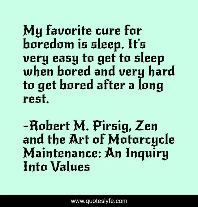 "Robert M. Pirsig, Zen and the Art of Motorcycle Maintenance: An Inquiry Into Values Quotes." Quoteslyfe.com, 2025. Mon. 08 Dec. 2025. <https://www.quoteslyfe.com/quote/My-favorite-cure-for-boredom-is-sleep-147225>.