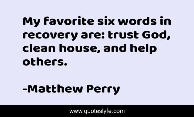 This page presents the quote "My favorite six words in recovery are: trust God, clean house, and help others.". Author of this quote is Matthew Perry. This quote is about god, words, help others,.