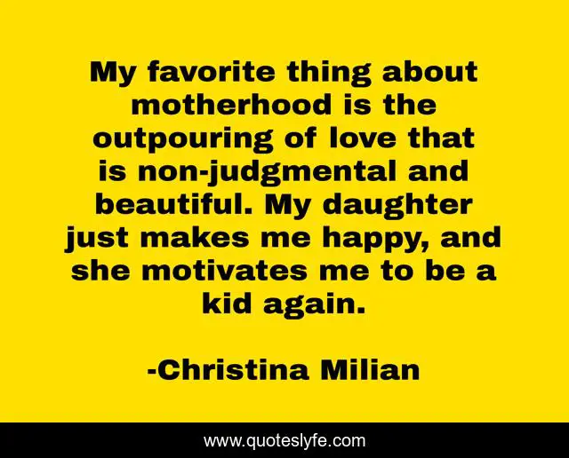 This page presents the quote "My favorite thing about motherhood is the outpouring of love that is non-judgmental and beautiful. My daughter just makes me happy, and she motivates me to be a kid again.". Author of this quote is Christina Milian. This quote is about beautiful, daughter, happy,.