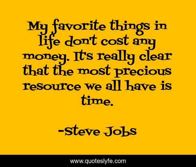 This page presents the quote "My favorite things in life don't cost any money. It's really clear that the most precious resource we all have is time.". Author of this quote is Steve Jobs. This quote is about money, life, favorite,.